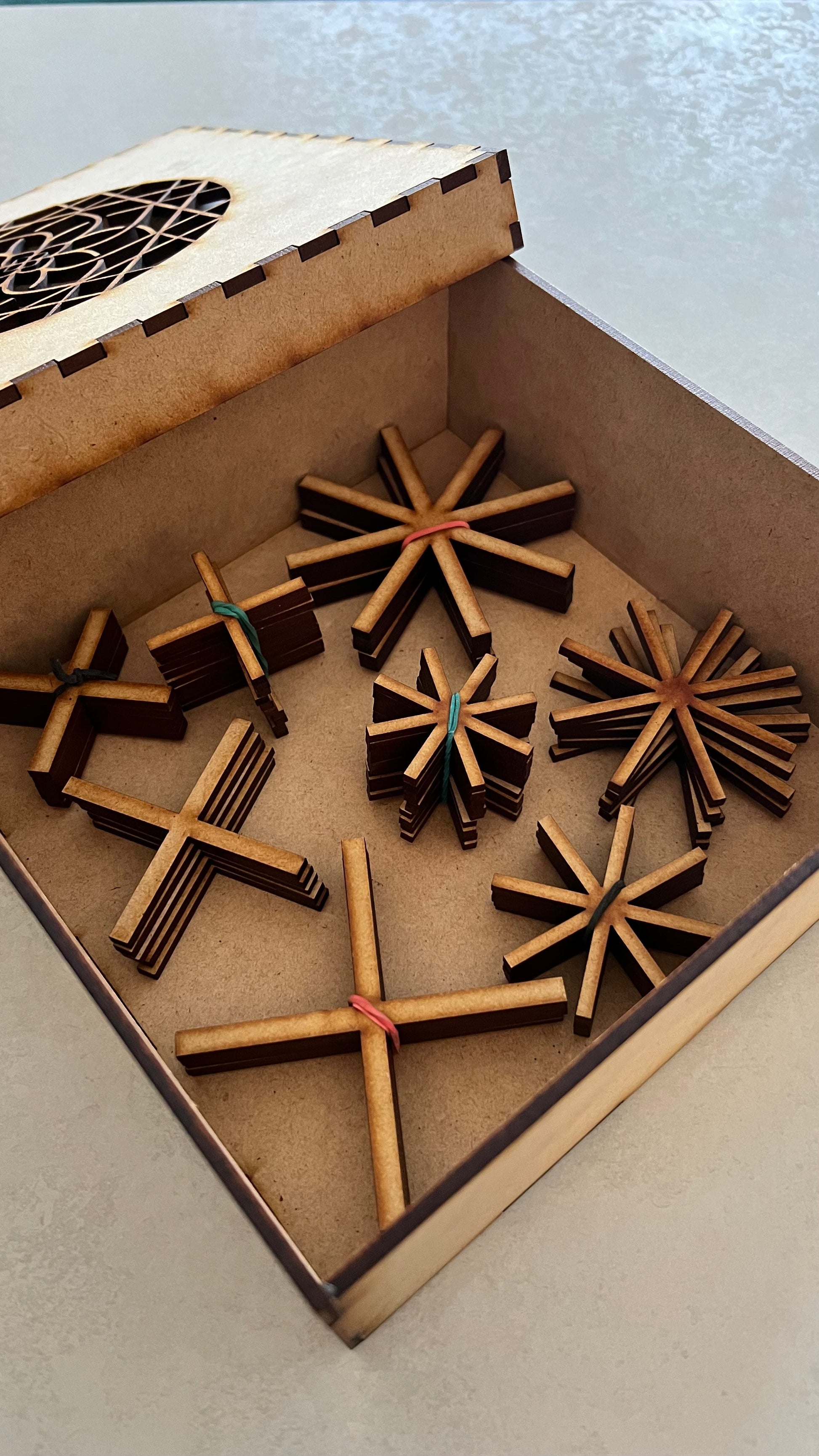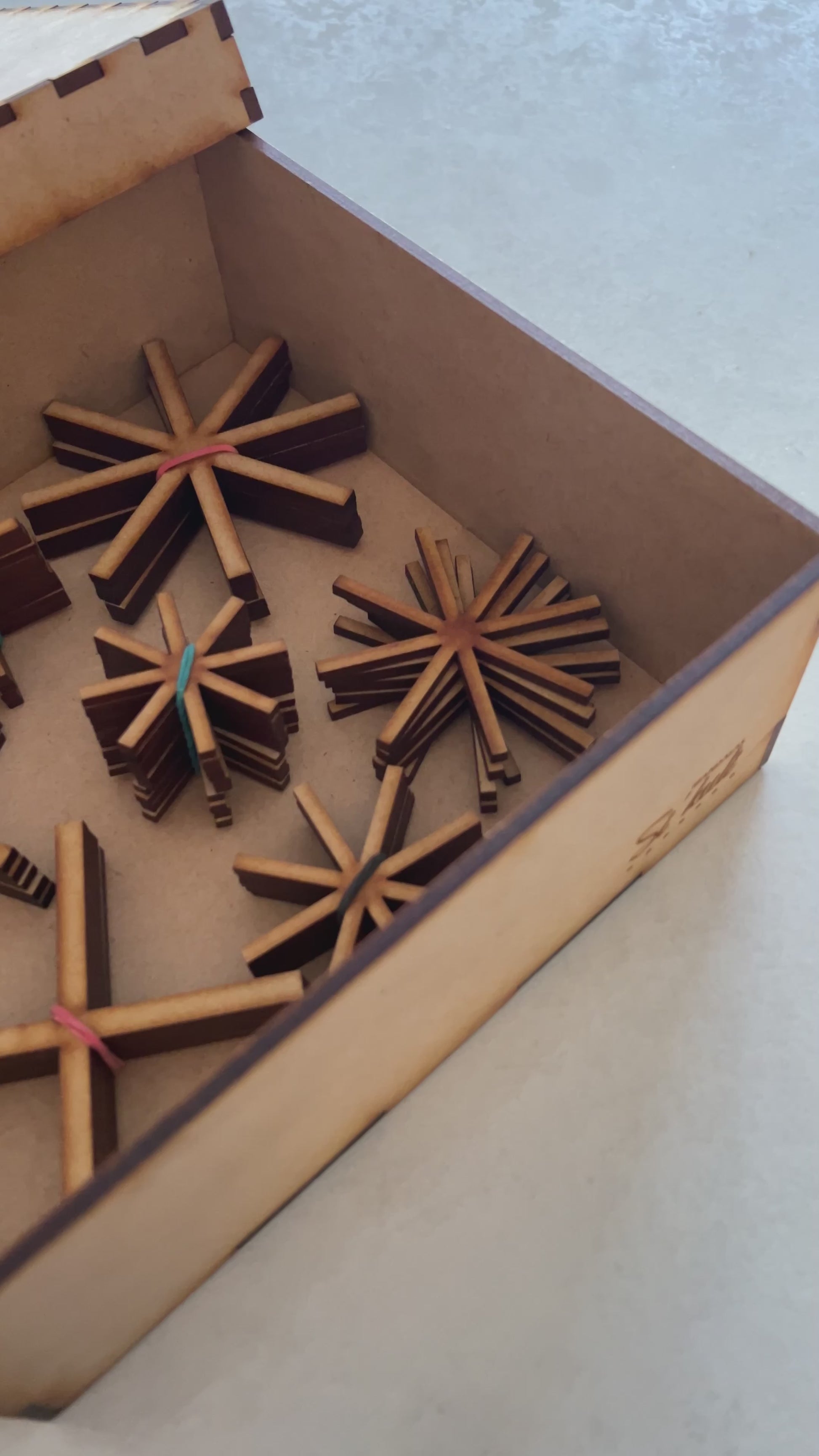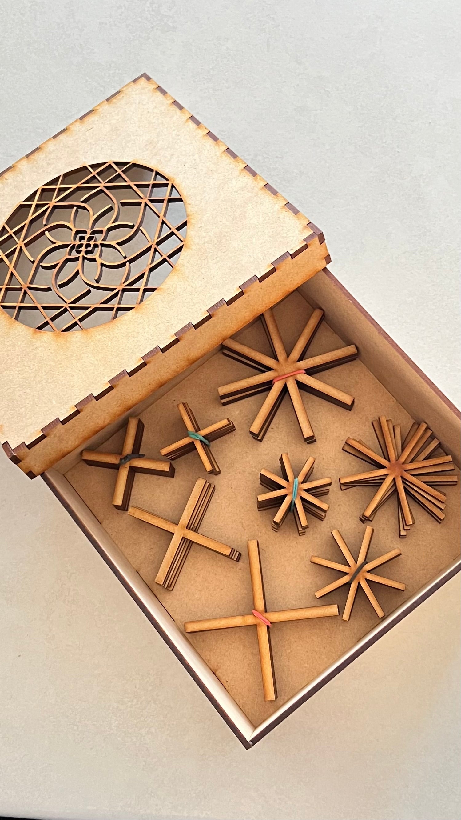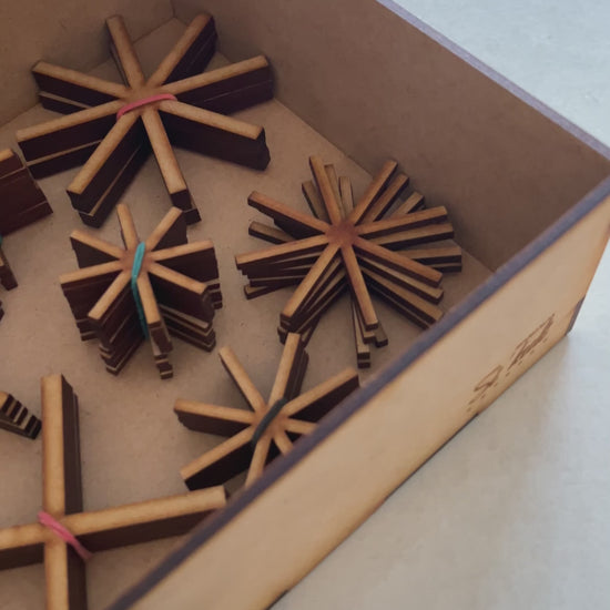 Todo va empacado en su caja de sikuli mándalas reutilizable.