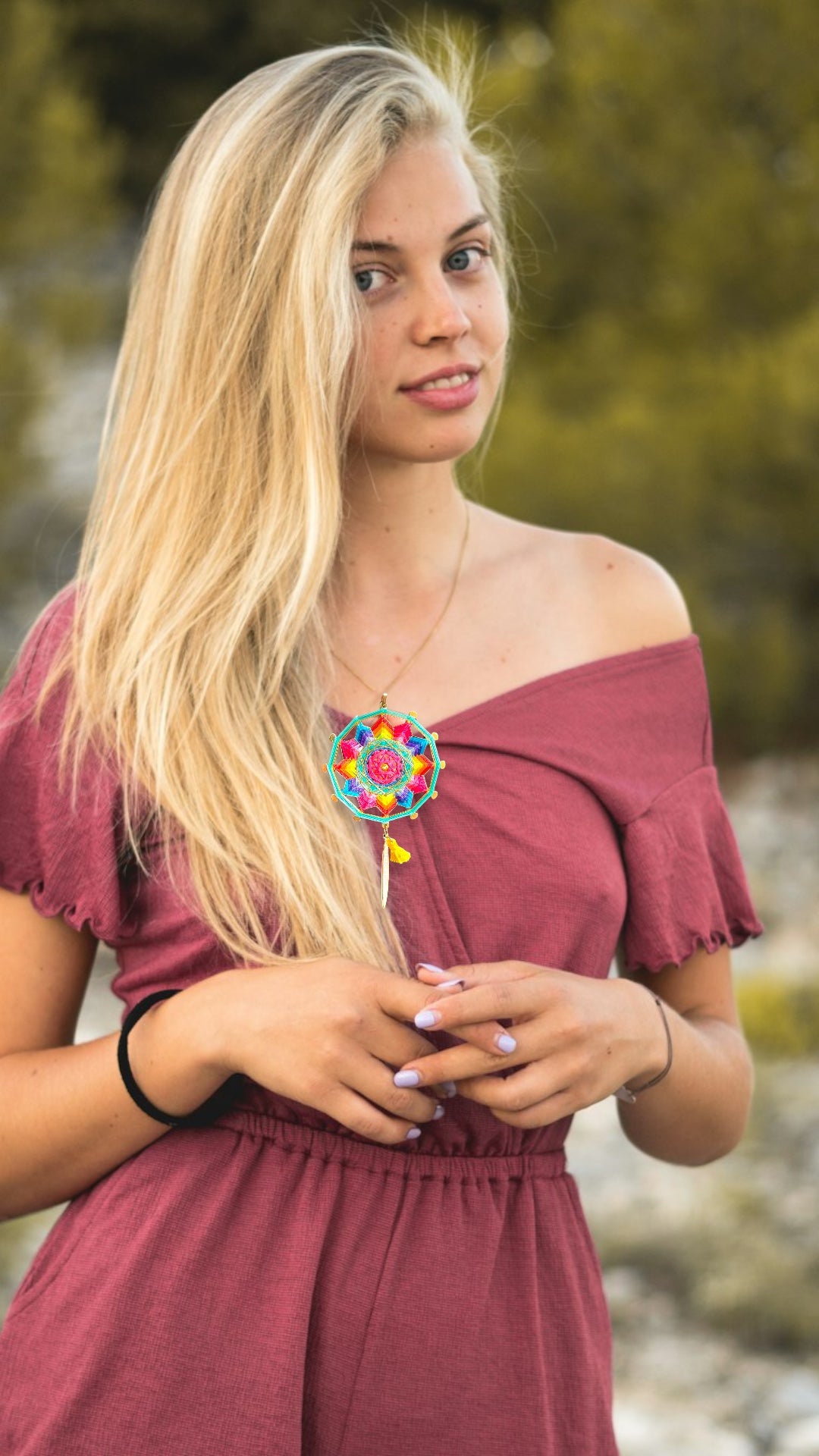 Medallones de 5cm de diámetro tejidos 100% a mano con hilo de poliéster de alta resistencia.
